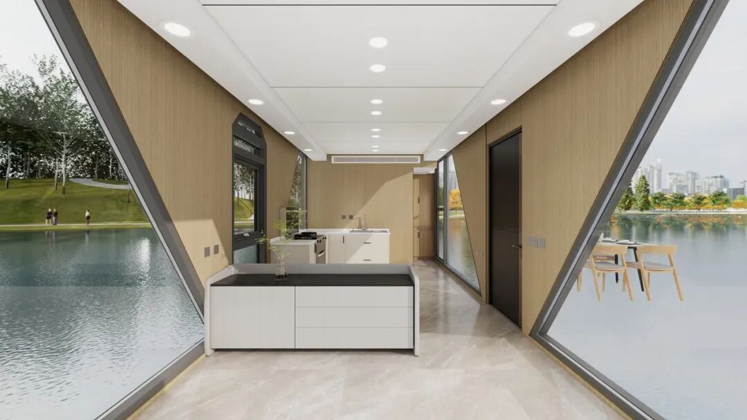 雙方人員在會上進行討論 雙方人員對產品內部裝飾進行探討 簽約成功雙方人員合影 與韓國公司簽約的星空艙產品為特殊尺寸,由國內工廠預制作,國外進行組裝,該產品的技術體現了實豐綠建在裝配式產房屋產品中的高效、舒適、美觀、實用的特點;與韓國公司的簽約,為我公司文旅產品打開了國際市場,標志著我公司邁出了關鍵性一步。韓方公司代表尹龍吉會長在會上與我公司與會人員就該產品進行探討